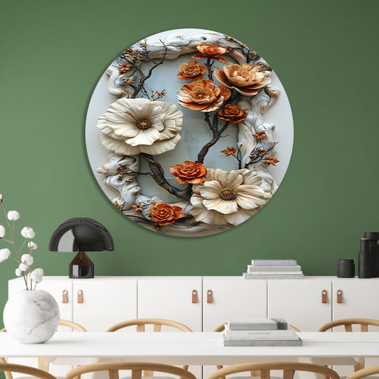 Handgemaakt bloemenreliëf in natuurlijke kleuren forex muurcirkel