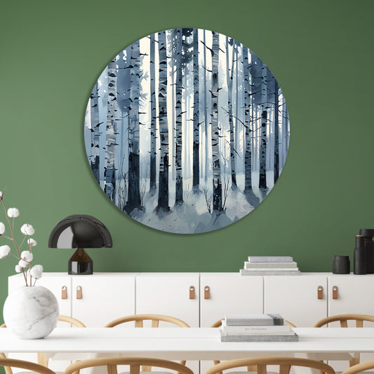 Abstract surrealistisch bos met blauwe tinten forex muurcirkel