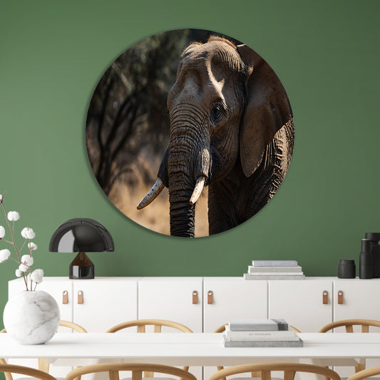 Prachtige olifant in natuurlijke habitat aluminium muurcirkel