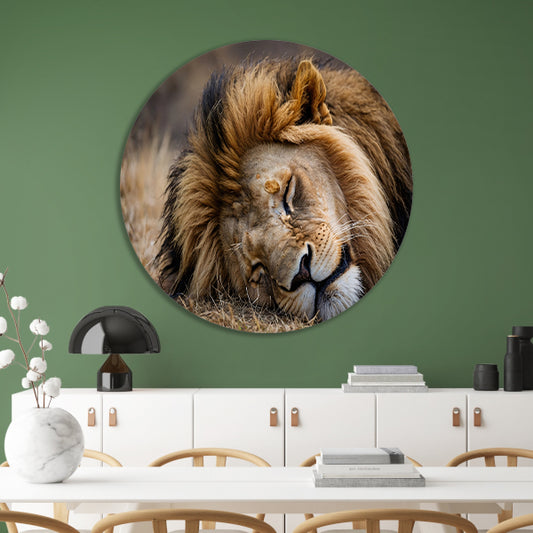 Majestueuze leeuw in het wild schilderij aluminium muurcirkel