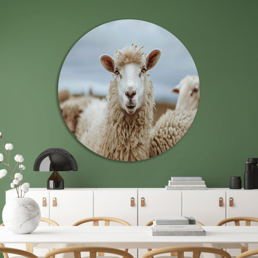 Schaap centraal in een rustige kudde aluminium muurcirkel