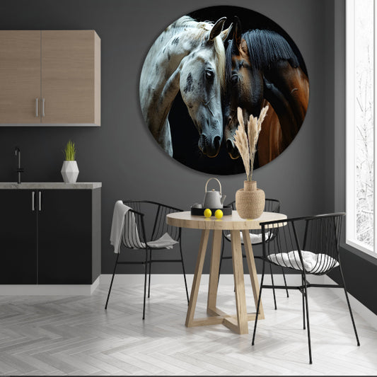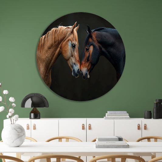 Twee paarden in een donkere omgeving forex muurcirkel