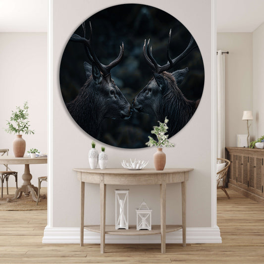 Twee herten in een donker bos forex muurcirkel