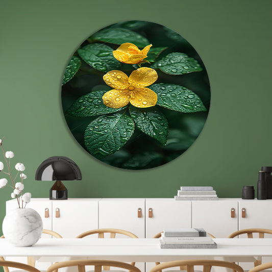 Gele bloem met dauwdruppels na de regen aluminium muurcirkel