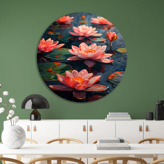 van Roze Waterlelies in een Vijver aluminium muurcirkel
