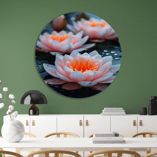 Zachtroze waterlelies met waterdruppels aluminium muurcirkel