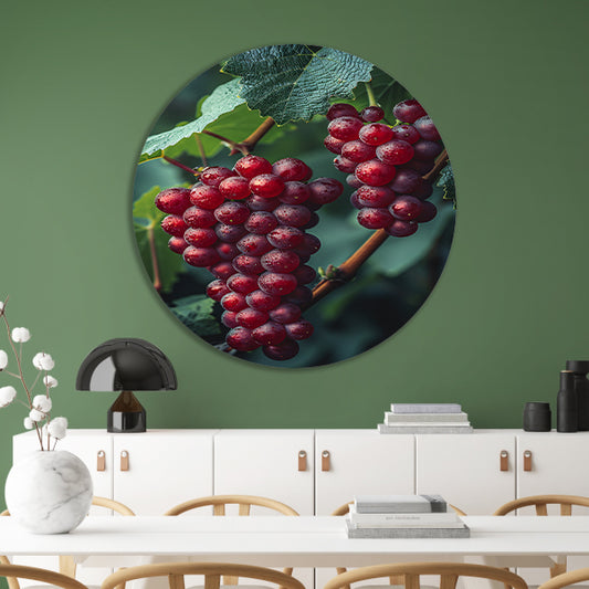 Rode druiven met dauwdruppels aluminium muurcirkel