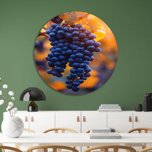 Blauwe druiven aan wijnrank in herfstlicht aluminium muurcirkel