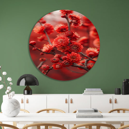 Rode Bloemen in Zachte Focus aluminium muurcirkel