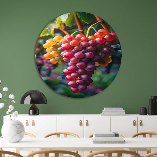 Rijpe druiventrossen aan de wijnstok aluminium muurcirkel