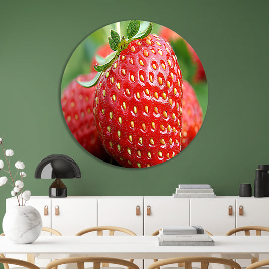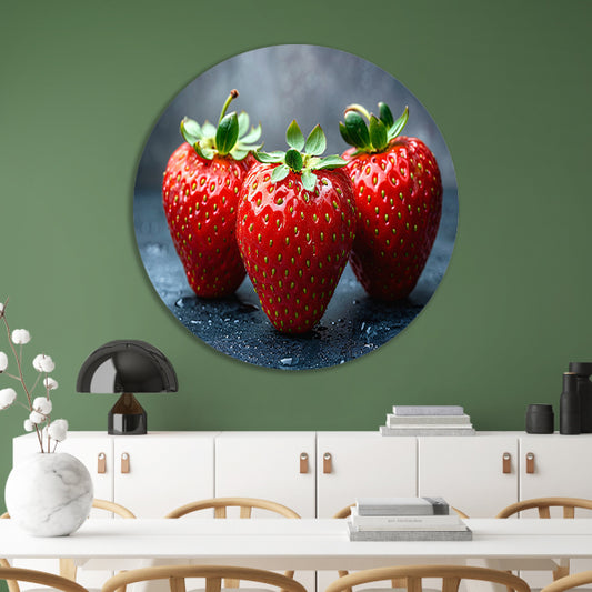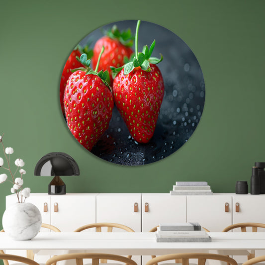 Klassiek aardbeien op tafel aluminium muurcirkel