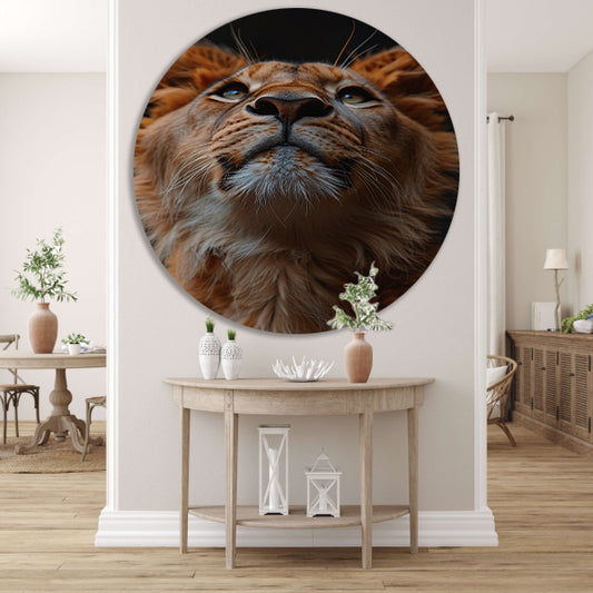 Majestueuze leeuw met intense blik omhoog forex muurcirkel