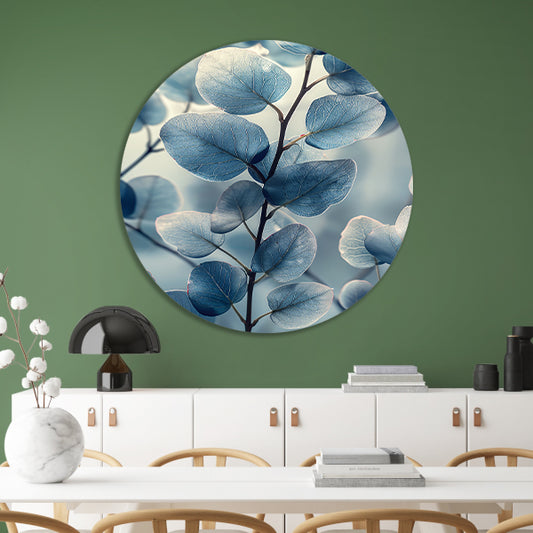 Blauwe eucalyptusbladeren in minimalistisch realisme forex muurcirkel