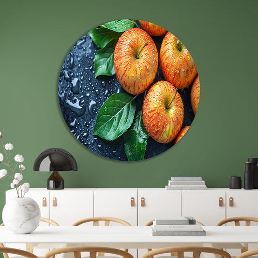 Glanzende appels met waterdruppels aluminium muurcirkel