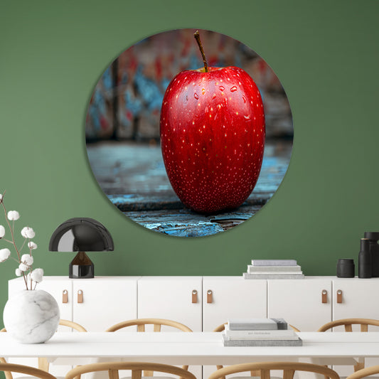 Rode Appel Bedekt met Dauwdruppels aluminium muurcirkel
