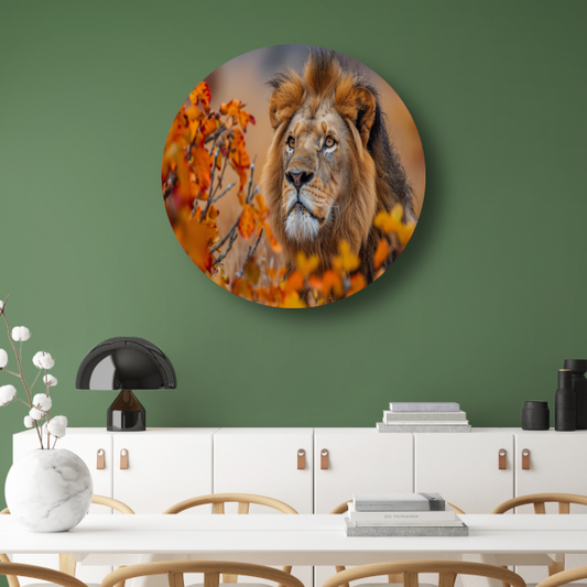 Leeuw in Herfstbladeren - Natuurs Koningschap forex muurcirkel