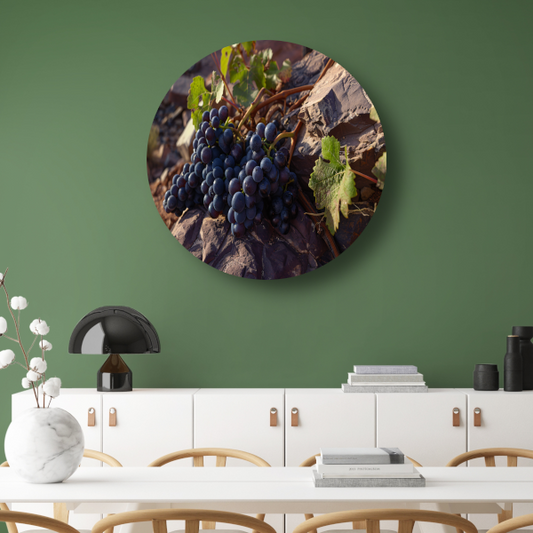 Rijpe druiventrossen op stenen ondergrond aluminium muurcirkel
