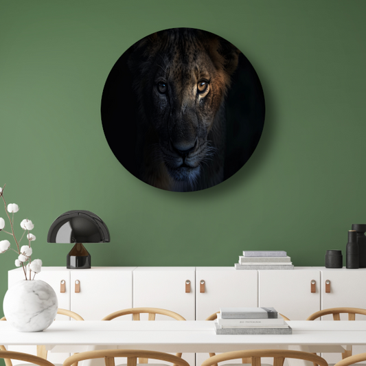 Leeuw in Schemerlicht met Gouden Manen forex muurcirkel