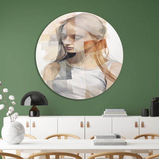 Gefragmenteerd Portret in Monochrome Tinten aluminium muurcirkel