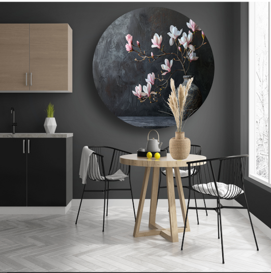 Magnolia Bloemen in Rustieke Grijze Vaas forex muurcirkel