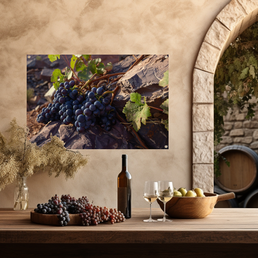 Rijpe druiventrossen op stenen ondergrond tuinposter