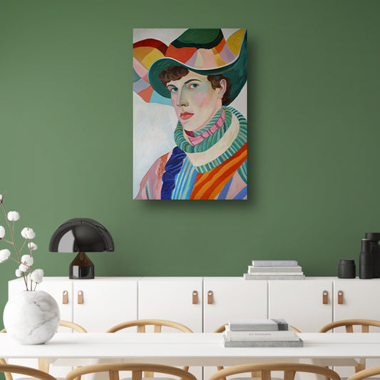 Surrealistisch portret met kleurrijke accessoires canvas met baklijst