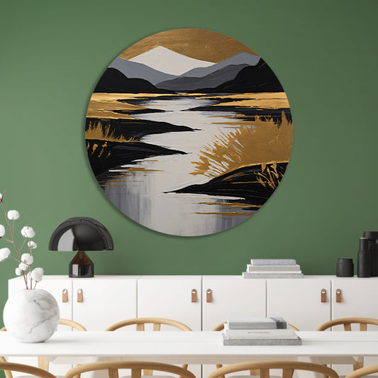 Abstracte Waterval in Gouden Reflectie forex muurcirkel
