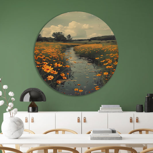Gouden bloemen langs meanderende rivier forex muurcirkel