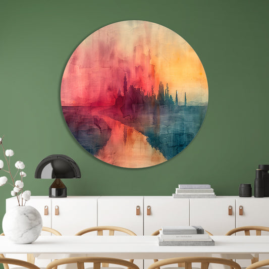 Abstracte moderne schilderij van zonsondergang aluminium muurcirkel