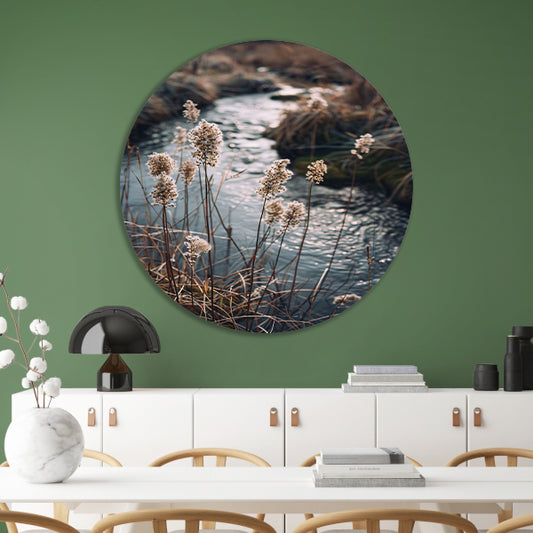Schilderij van een rustige oever met veel groen forex muurcirkel