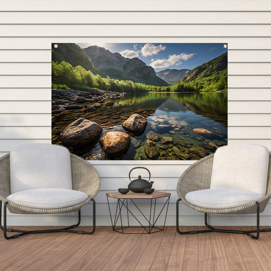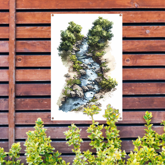 De Rivier tuinposters brengen de kalmte en schoonheid van stromend water direct naar je buitenruimte. Je vindt er schilderachtige scènes van kabbelende rivieren, mistige bosoevers, reflecties in water en vredige kano’s op het water. Deze prints geven je tuin of terras een rustgevende, bijna meditatieve uitstraling. De posters zijn gemaakt van sterk, water- en vuilafstotend materiaal, en ze zijn eenvoudig op te hangen dankzij metalen ringen in de hoeken. Ze blijven mooi, zelfs bij wisselvallig weer. Met een rivier poster creëer je moeiteloos een relaxte en natuurlijke oase waar je kunt genieten van sfeer, stilte en tijdloze rust.