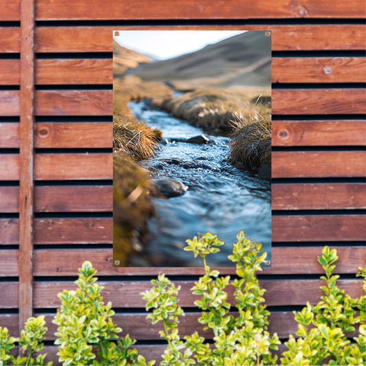 Kabbelend beekje omgeven door herfstgras tuinposter
