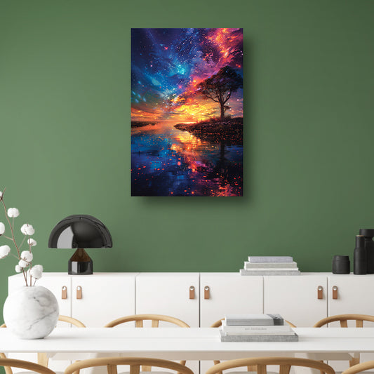 Kosmische rivier bij zonsondergang op buitenaardse planeet canvas