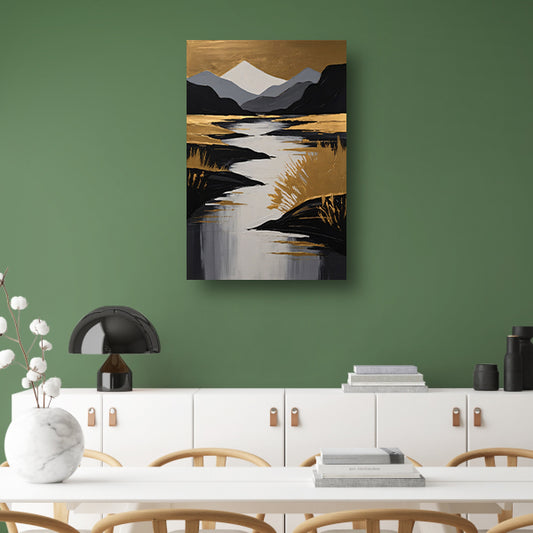 Rustic River Flowing Through Monochrome Mountains canvas