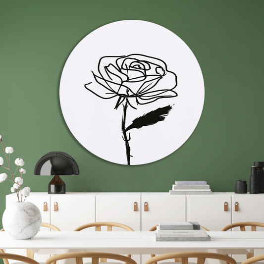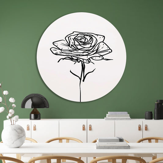 Zwart-witte minimalistische lijntekening van roos forex muurcirkel