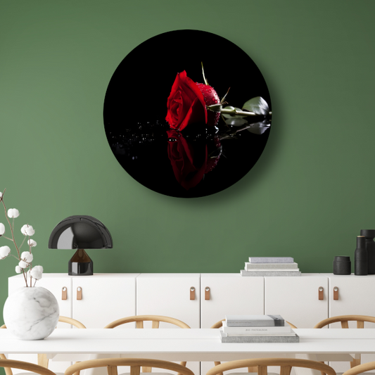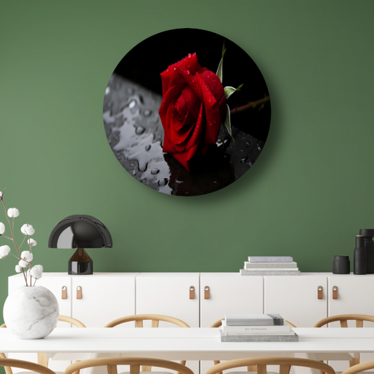 Rode Roos op Donkere Achtergrond aluminium muurcirkel