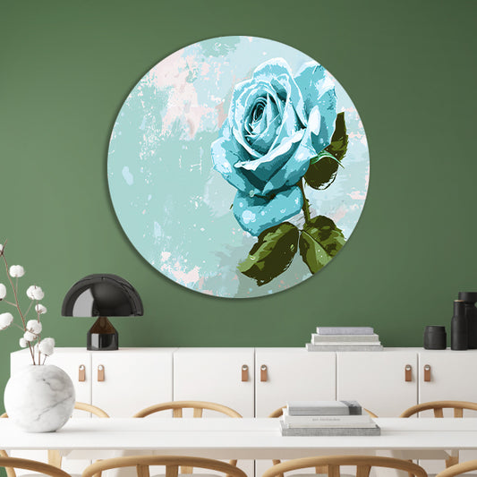 Prachtige digitale blauwe roos schilderij aluminium muurcirkel
