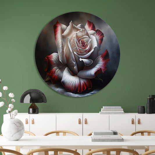 Prachtige moderne schilderij van een roos aluminium muurcirkel