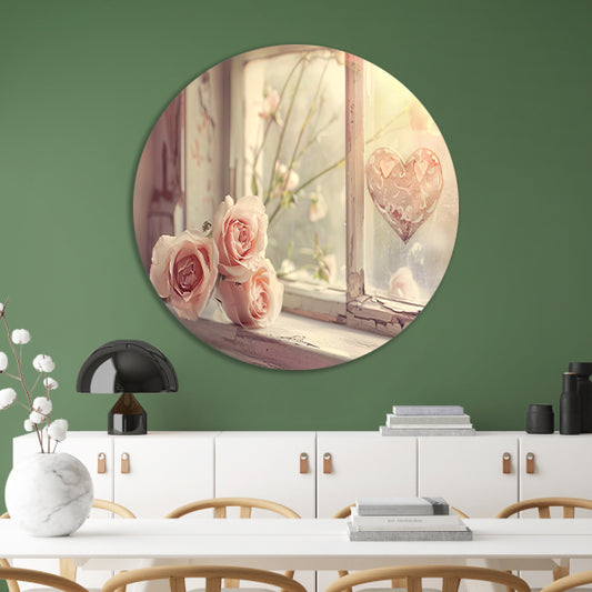 Impressionistische rozen op vensterbank aluminium muurcirkel