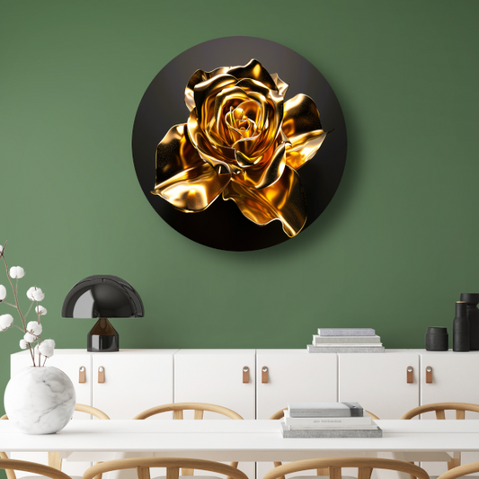 Prachtige Gouden Roos met Schitterende Glans aluminium muurcirkel
