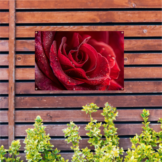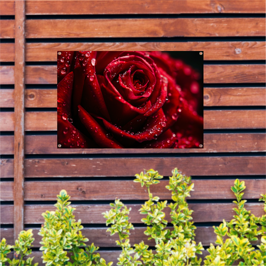 Rode Roos met Waterdruppels in Close-up tuinposter