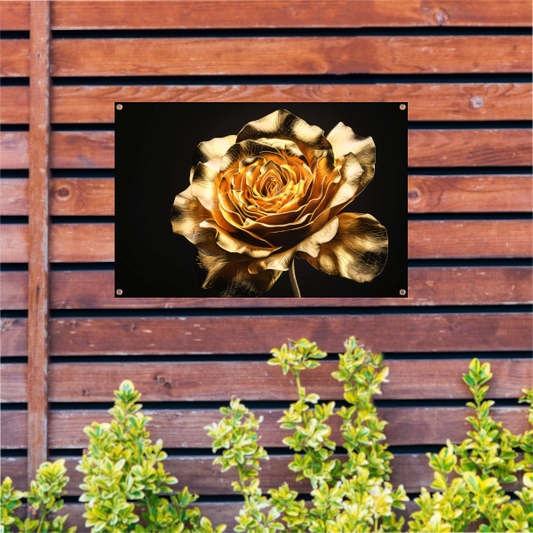 Gouden Roos Elegante Decoratie Zwarte Achtergrond tuinposter