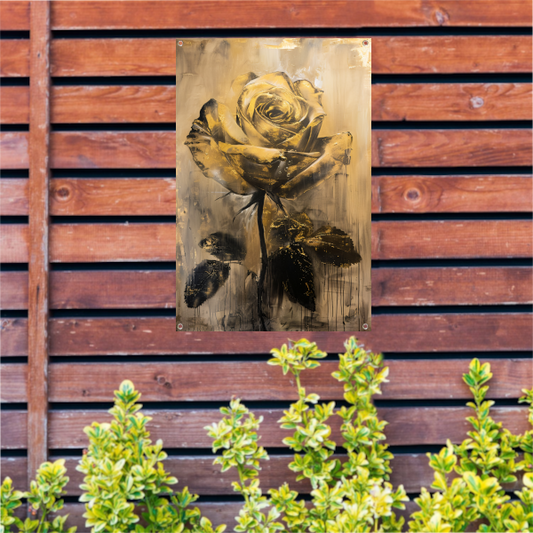 Gouden en Zwarte Abstracte Roos op Schilderij tuinposter