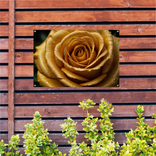 Gouden Roos met Dauw op Zwarte Achtergrond tuinposter