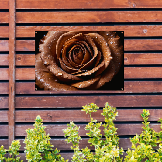 Sepia Roos met Waterdruppels Close-up tuinposter