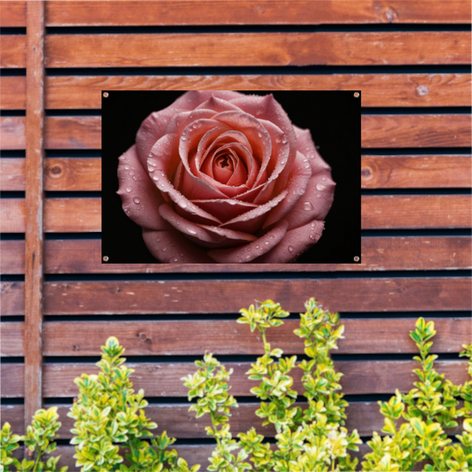 Roze Roos met Dauwdruppels op Zwart tuinposter