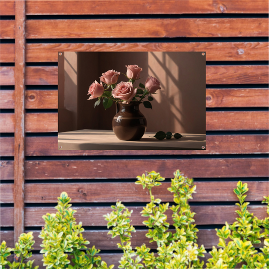 Roze Rozen in Bruine Vaas met Schaduwspel tuinposter