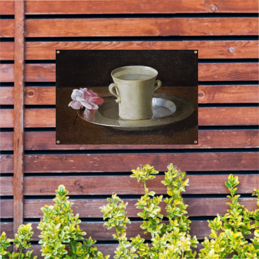 Kopje water en een roos op een zilveren bord - Francisco de Zurbarán tuinposter
