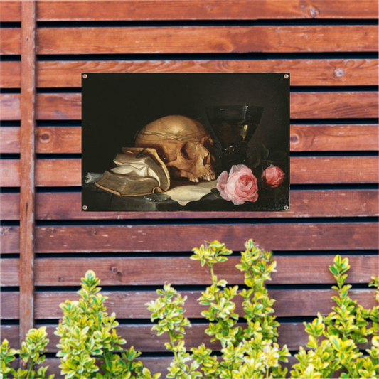 Een Vanitas-stilleven met een schedel, een boek en rozen - Jan Davidsz. de Heem tuinposter