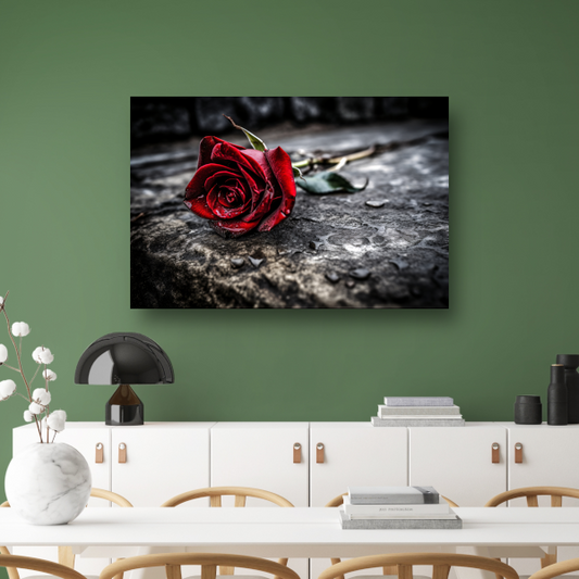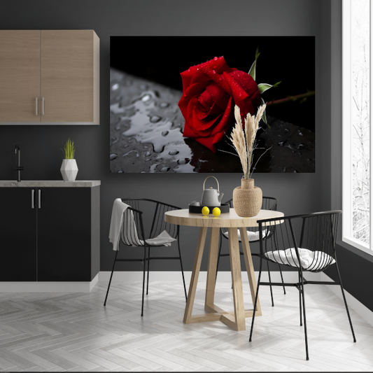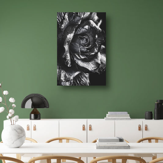 Elegante zwart-wit macrofotografie van een roos canvas met baklijst
